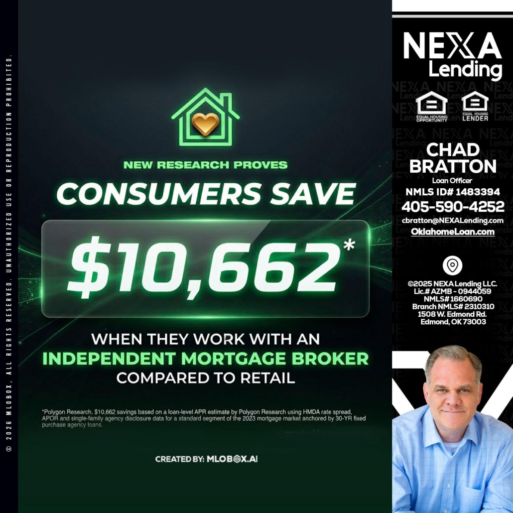 10,662 - Chad Bratton -Senior Loan OfficerHi, my name is Chad Bratton. I’m a Loan Officer with NEXA Lending LLC., offering personalized mortgage solutions, fast customized quotes, great rates and service with integrity.