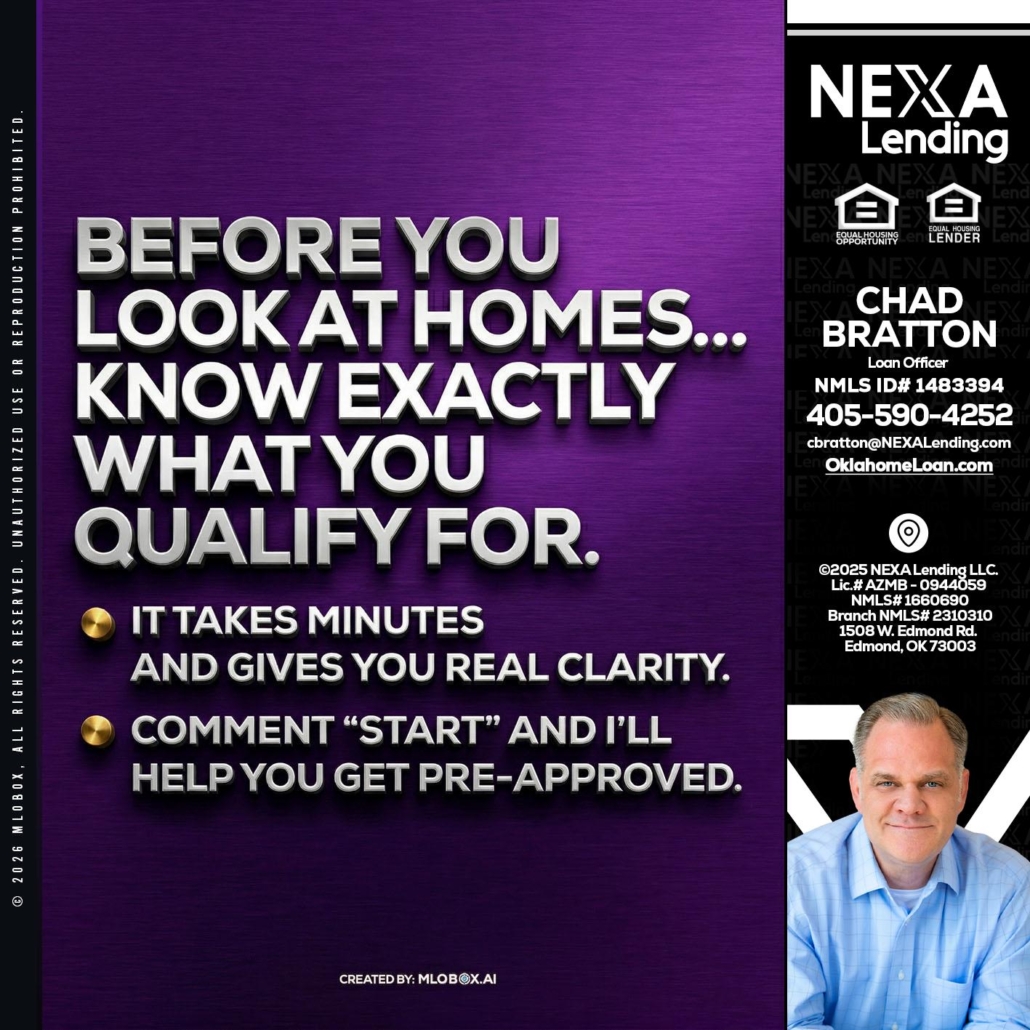 Hi, my name is Chad Bratton. I’m a Loan Officer with NEXA Lending LLC., offering personalized mortgage solutions, fast customized quotes, great rates and service with integrity.