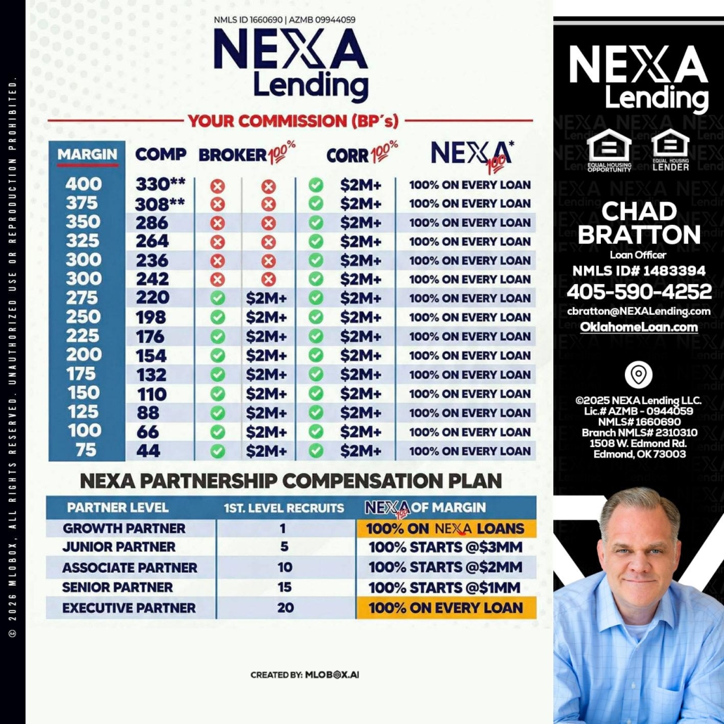 Hi, my name is Chad Bratton. I’m a Loan Officer with NEXA Lending LLC., offering personalized mortgage solutions, fast customized quotes, great rates and service with integrity.