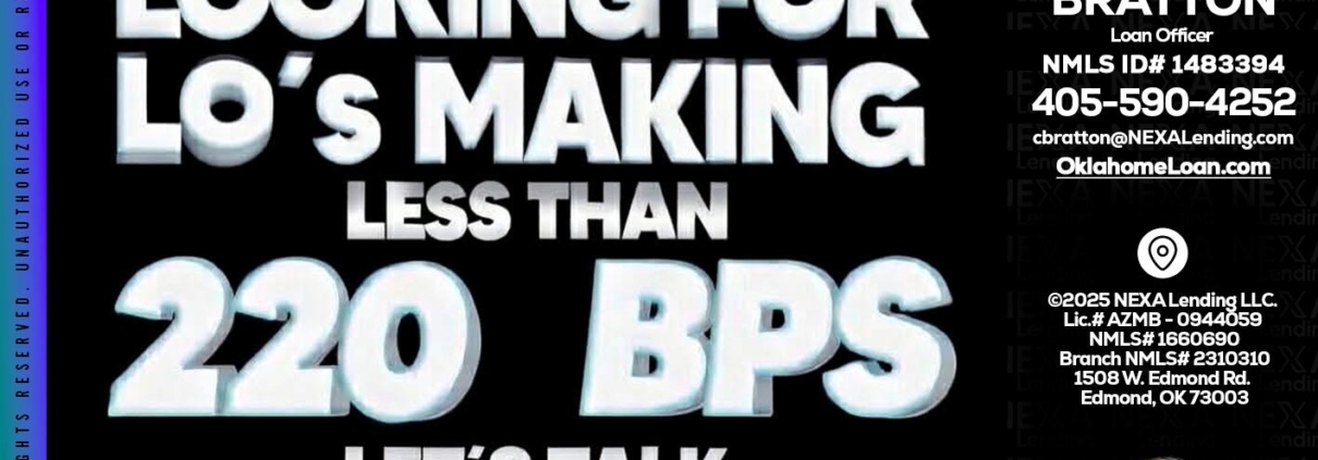 LOOKING FOR - Chad Bratton -Senior Loan OfficerHi, my name is Chad Bratton. I’m a Loan Officer with NEXA Lending LLC., offering personalized mortgage solutions, fast customized quotes, great rates and service with integrity.