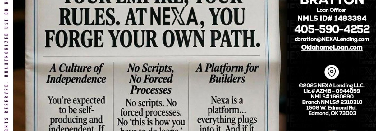 Hi, my name is Chad Bratton. I’m a Loan Officer with NEXA Lending LLC., offering personalized mortgage solutions, fast customized quotes, great rates and service with integrity.