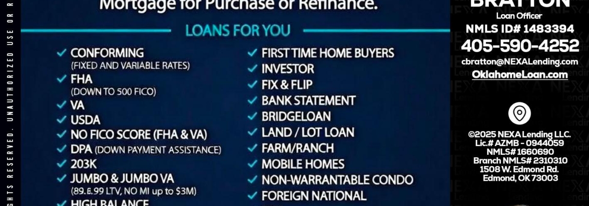 Hi, my name is Chad Bratton. I’m a Loan Officer with NEXA Lending LLC., offering personalized mortgage solutions, fast customized quotes, great rates and service with integrity.